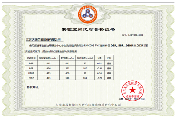 附:實驗室間比對合格證書