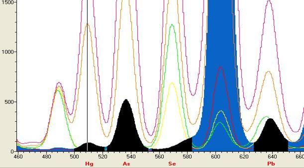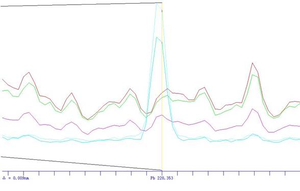 Pb的圖譜(虛譜表示不同含量的譜峰)