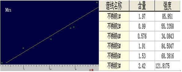 3. 不銹鋼中Mn的工作譜圖與相關數據