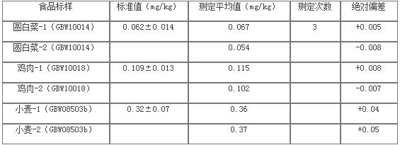 采用濕式消解對食品樣品進行處理,原子熒光光譜儀對樣品溶液進行測試,測試結(jié)果準確可靠,滿足疾控行業(yè)測試要求。