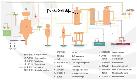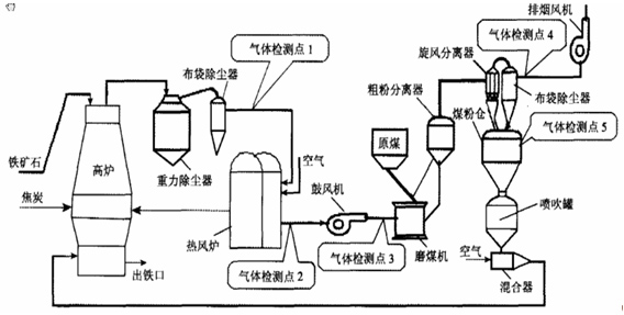 (1)監測點1:高爐煤氣分析,CO和CO2,控制高爐爐況和回收能源氣;