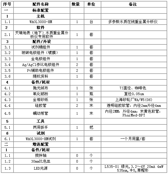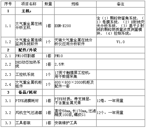 綜上所述,有色金屬礦業對環境的重金屬污染包括了大氣、水體和土壤三個方面。因此,為了全面監測有色金屬礦業環境重金屬監測系統包括:大氣、水體和土壤三個部分,選用監測儀器如下表: