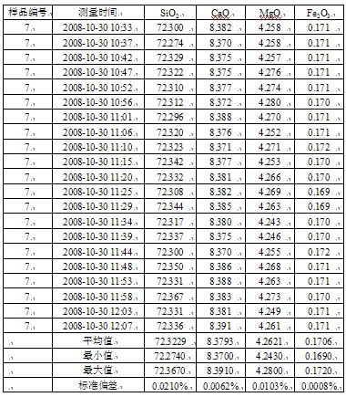 標(biāo)樣:建材院玻璃所自制標(biāo)樣(僅有常規(guī)測(cè)量的四種元素)