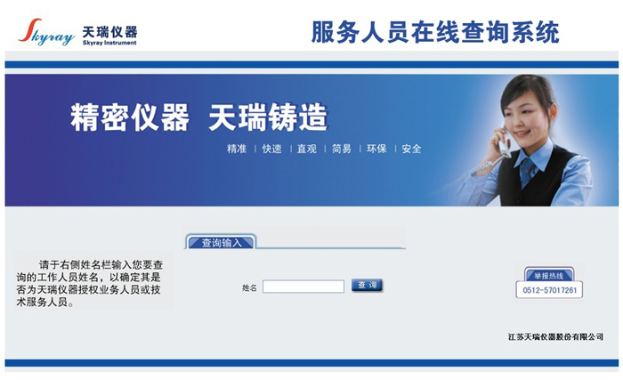 經過2個月的準備工作,天瑞儀器“服務人員在線查詢”系統今日投入試運行,該系統涵蓋了天瑞儀器在職的銷售和技術服務人員的基本信息,通過該查詢系統,客戶可以隨時查詢上門服務的銷售或者技術服務人員相關信息。